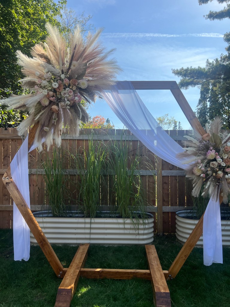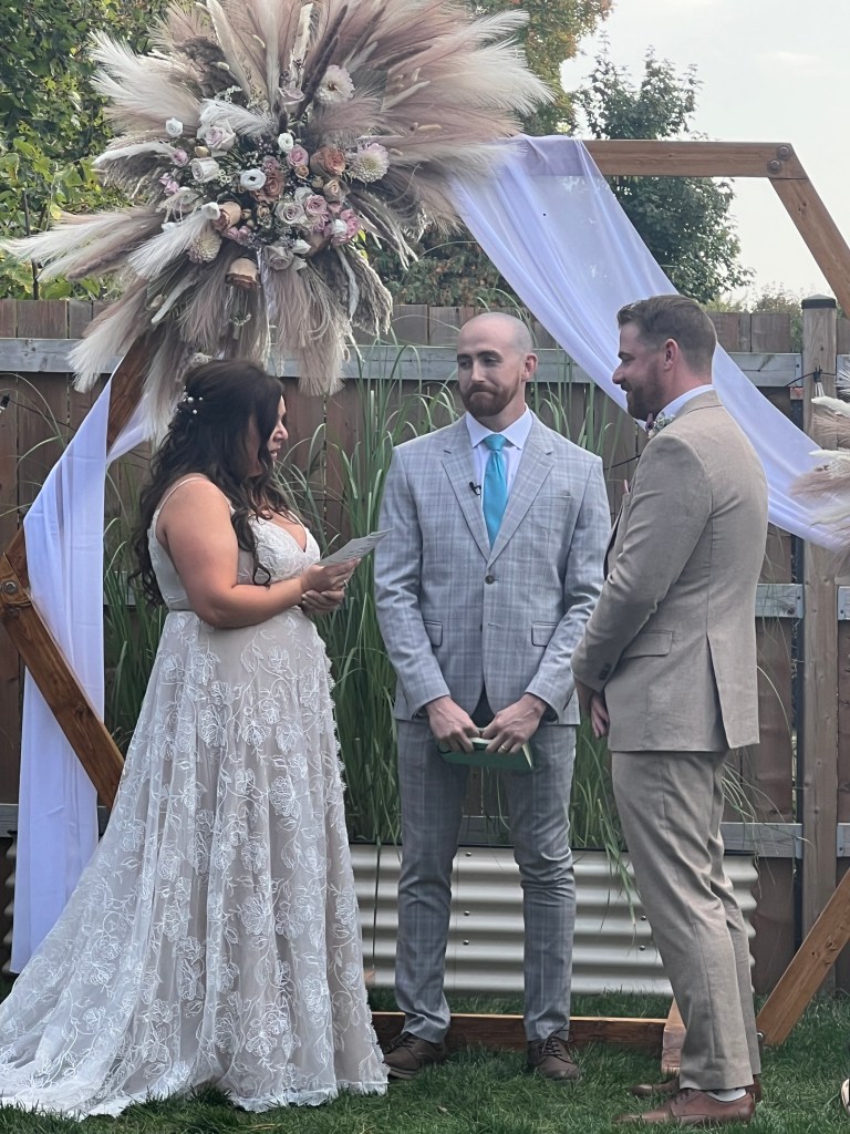 Tucked into the coziness of their own backyard, Andrea & Andrew celebrated their love with an intimate wedding that was as heartfelt as it was beautiful. Soft blushes and creamy tones set a warm, romantic atmosphere, while oversized charcuterie boards and some of the best BBQ you could imagine brought everyone together in the most delicious way. Their day was effortlessly joyful — a perfect match for their fun, bubbly personalities that lit up every moment.